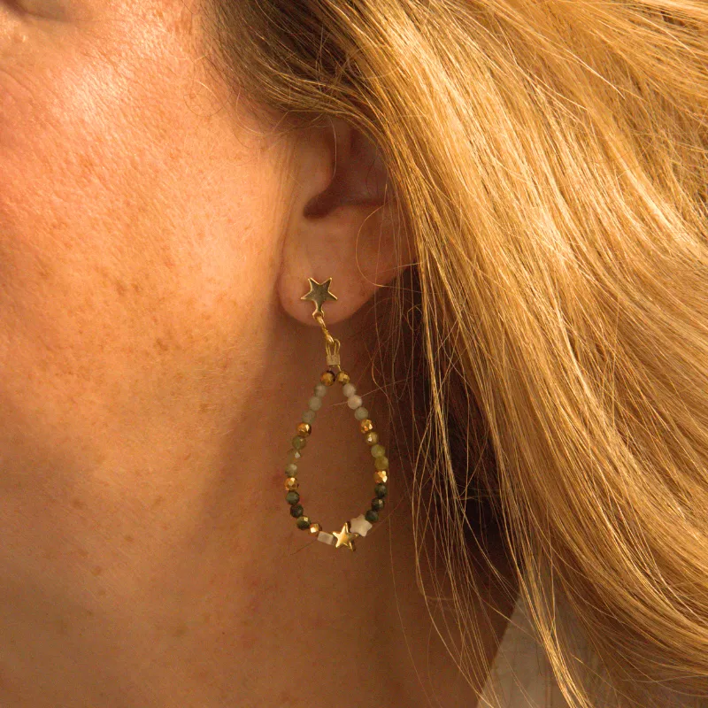 Intemporel et chic, ce bijou sera ton talisman quotidien. Laisse le pouvoir des pierres agir. Elles vont libérer et nettoyer tes énergies. Fais de ces boucles ton porte-bonheur, ton talisman, en les portant au quotidien.