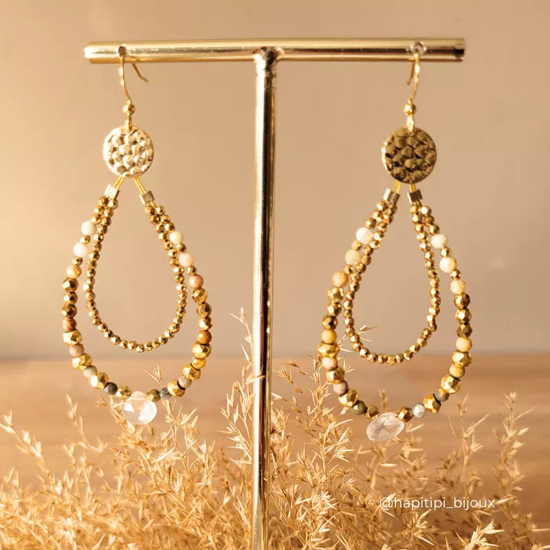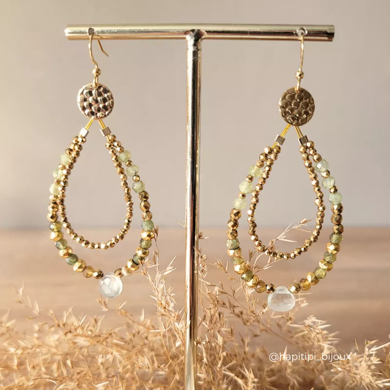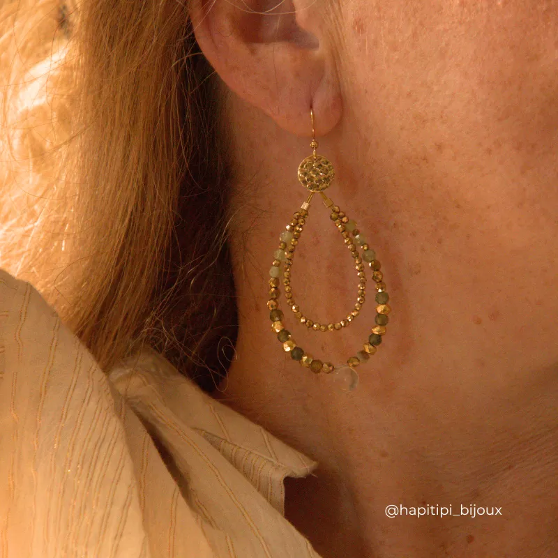 Intemporel et chic, ce bijou sera ton talisman quotidien. Laisse le pouvoir des pierres agir. Elles vont libérer et nettoyer tes énergies. Fais de ces boucles ton porte-bonheur, ton talisman, en les portant au quotidien.