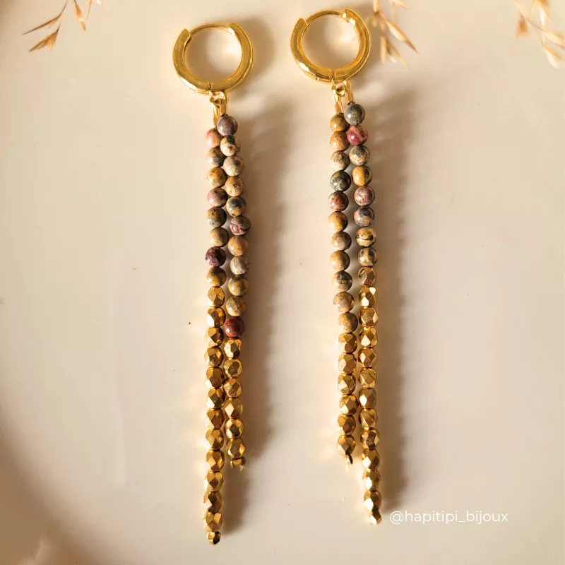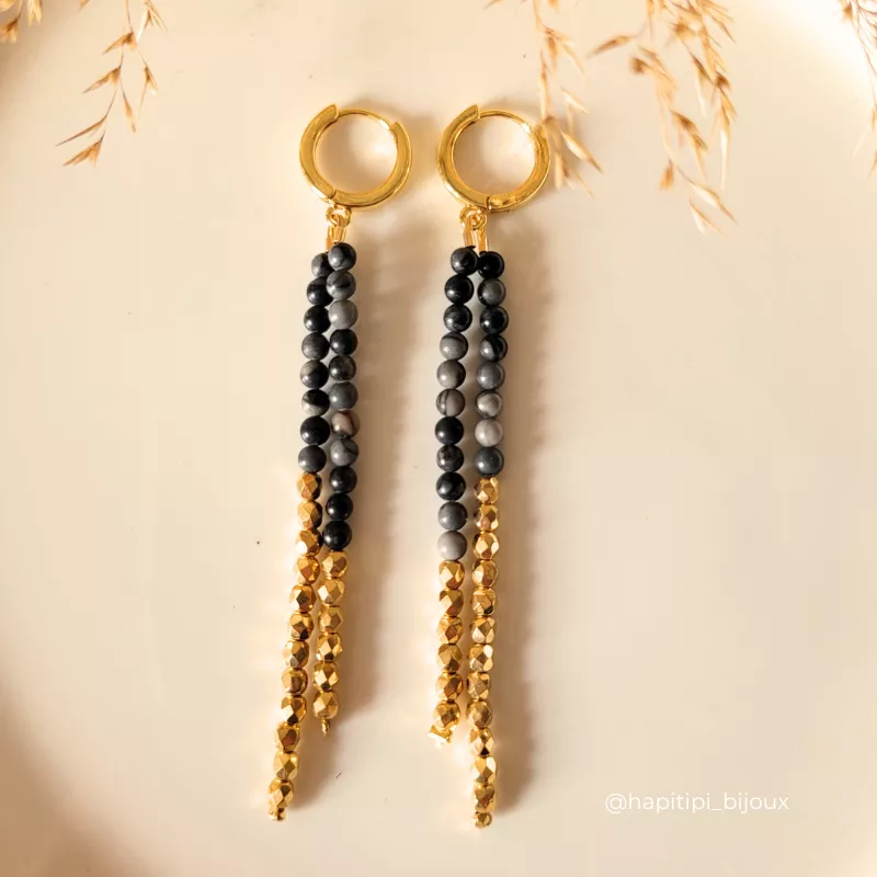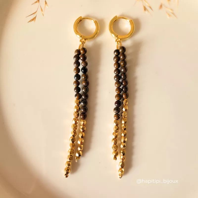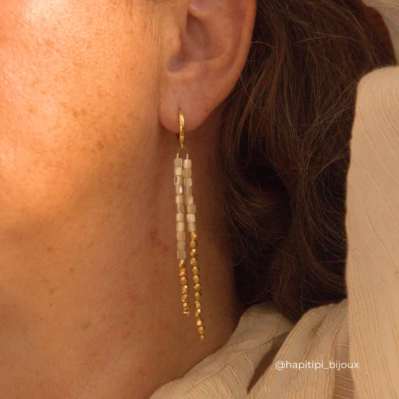 Intemporel et chic, ce bijou sera ton talisman quotidien. Laisse le pouvoir des pierres agir. Elles vont libérer et nettoyer tes énergies. Fais de ces boucles ton porte-bonheur, ton talisman, en les portant au quotidien.